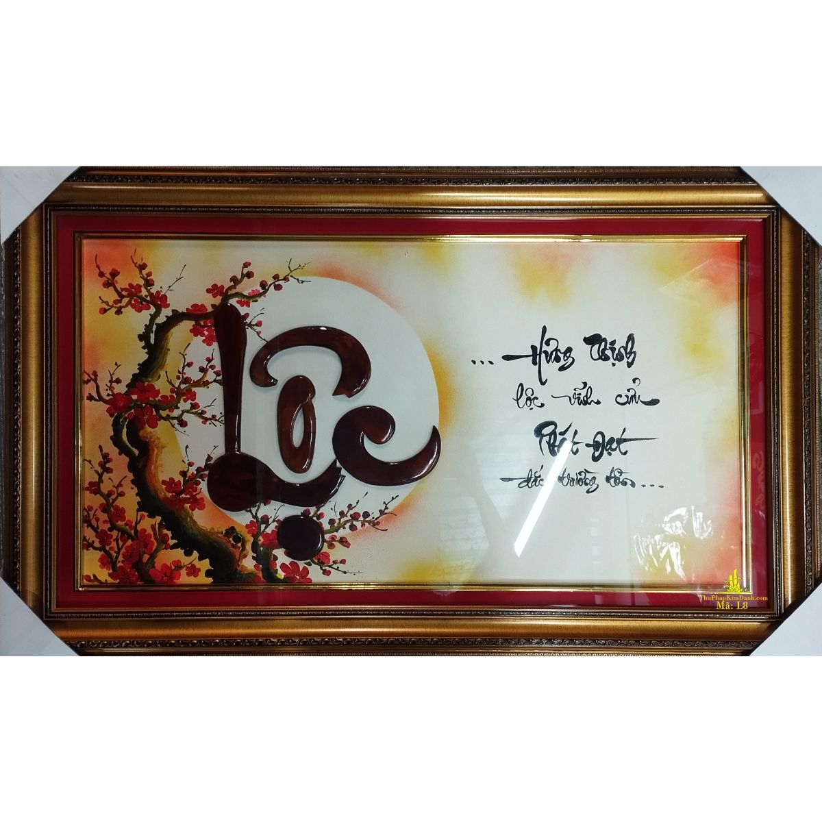 Bức tranh không chỉ là một vật trang trí, mà là một lời chúc mang chiều sâu triết lý: muốn “lộc” bền vững, phải biết vun trồng đúng cách. Sự kết hợp giữa thư pháp và hình tượng hoa đào khiến tác phẩm vừa mang giá trị nghệ thuật, vừa chứa đựng thông điệp sống đáng suy ngẫm, rất phù hợp cho những ai đang tìm kiếm một món quà vừa đẹp, vừa có ý nghĩa lâu dài.